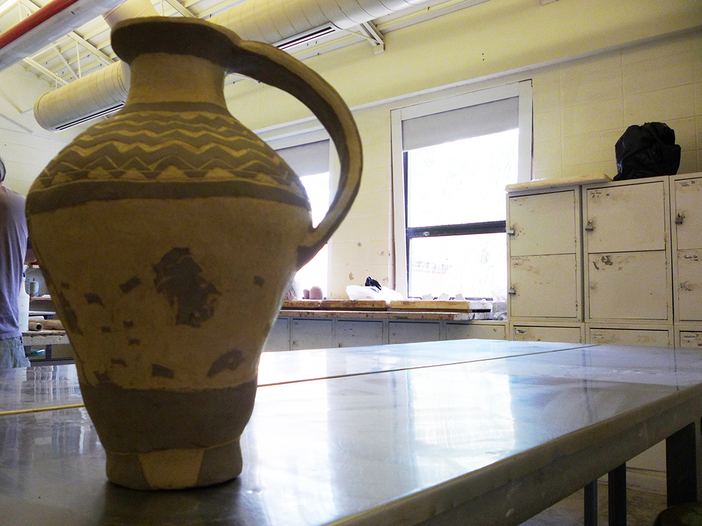Due to unfortunate circumstances in 2023, this piece may be lost to time. I did save a lot of other work made from around this same time period in 2011 but this particular piece still really means a lot to me. That said, I wish I had taken better quality photos of the final angle back when a lot of the other photos on this site were taken. The idea of this project was to adopt an old pottery style and make it contemporary with a modern design element. The form itself was directly inspired by images of ancient clay water vessels, in particular the ancient water jugs found around North Africa and West Asia. This work displays the figure of an old man holding his hand out while a meager couple of dollar bills are left lingering in the void around him. This stands in stark contrast to the other side of the piece based on a real photo of a past presidential U.S. administration while the suited figures are paraded by dollar bills raining from the sky. Of course, there wouldn't be a bridge between these 2D elements without the iconic image of lady liberty holding the scales of justice while wearing her blindfold, an image I based on the cover of my favorite Metallica album (despite its absence of audible bass)- from which this piece derives its name.